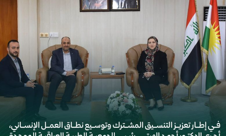 اربيل – في إطار تعزيز التنسيق المشترك وتوسيع نطاق العمل الإنساني، أجرى الدكتور أحمد الهيتي، رئيس الجمعية الطبية العراقية الموحدة للإغاثة والتنمية، زيارة رسمية إلى السيدة سروة رسول، المدير العام لمركز تنسيق الأزمات المشترك في إقليم كوردستان – وزارة الداخلية.