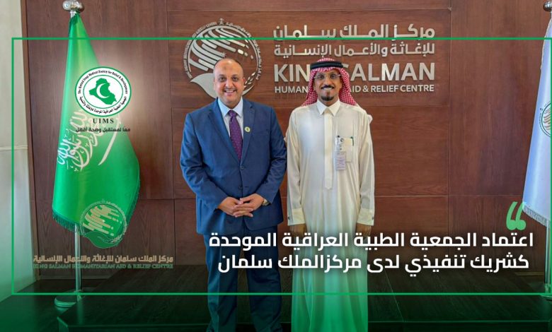 تتشرّف الجمعية الطبية العراقية الموحّدة للإغاثة والتنمية بالإعلان عن اعتمادها كشريك تنفيذي لدى مركز الملك سلمان للإغاثة والأعمال الإنسانية في جمهورية العراق.