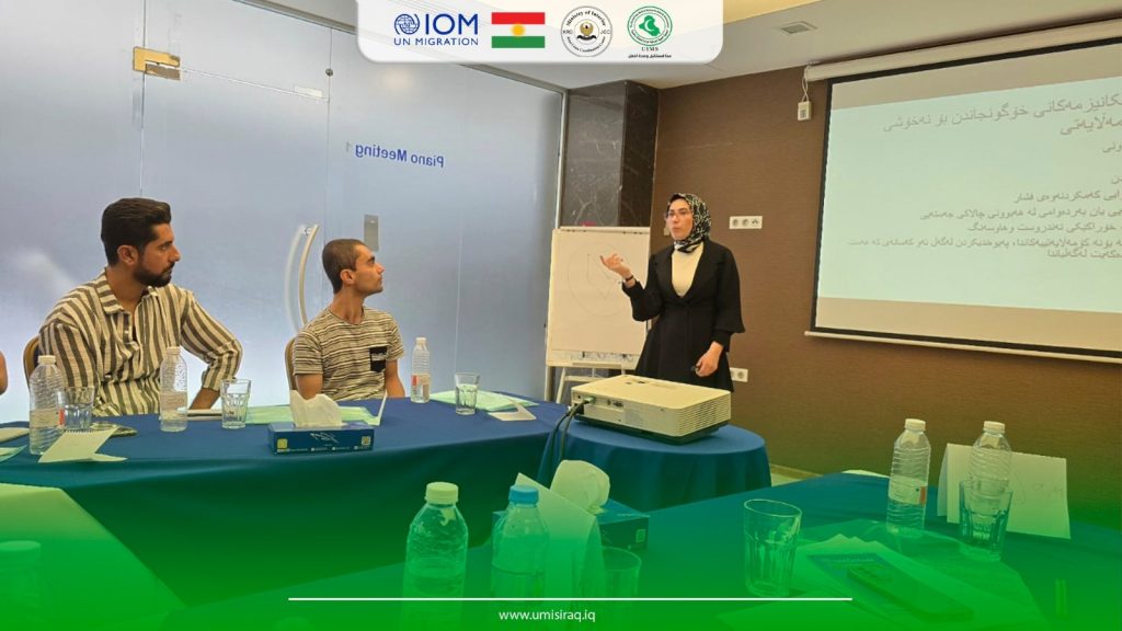 As part of the National Referral Program, and under the supervision of the Joint Crisis Coordination Center (JCC) of the Kurdistan Regional Government, the United Iraqi Medical Society for Relief and Development(UIMS), in partnership with the International Organization for Migration (IOM), conducted a series of psychological awareness sessions in the governorates of Erbil and Sulaymaniyah. These sessions were delivered by specialized trainers in the field of mental health.
