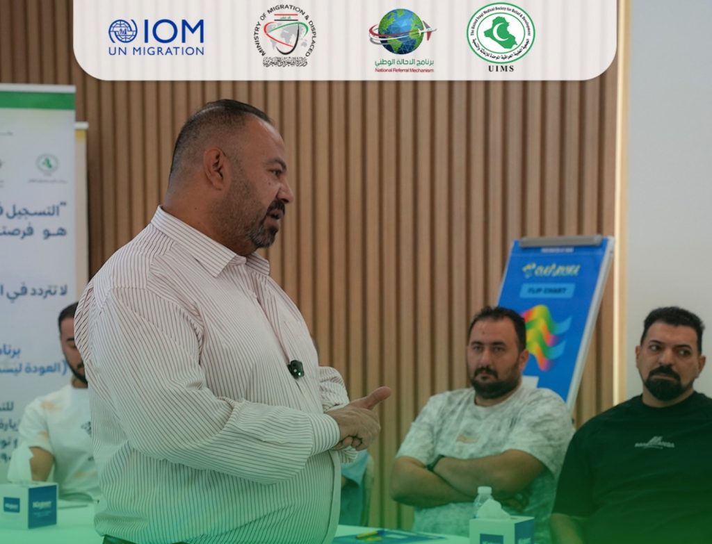 The United Iraqi Medical Society for Relief and Development, in coordination with the Ministry of Migration and Displacement and with support from the International Organization for Migration (IOM), continues to implement the Returnee Support Program, particularly for those returning from European Union countries, within the framework of the National Referral Mechanism.
